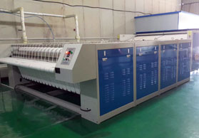 熨平機的調(diào)試常和其試運行同時進行。為此,須在設(shè)備調(diào)試時,將一定數(shù)量的、用水浸透并經(jīng)甩干烘干的布草織物備好待用。